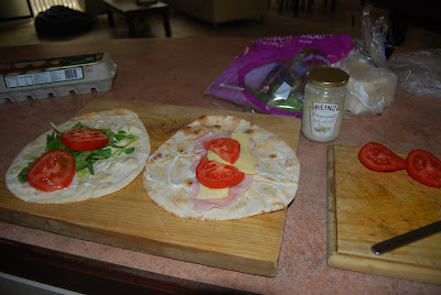 Lunch time! I made Sam and I some yummy wraps. See that Heinz jar? That is Mayonnaise Aioli with Dill... I HIGHLY recommend this, it's gorgeous!