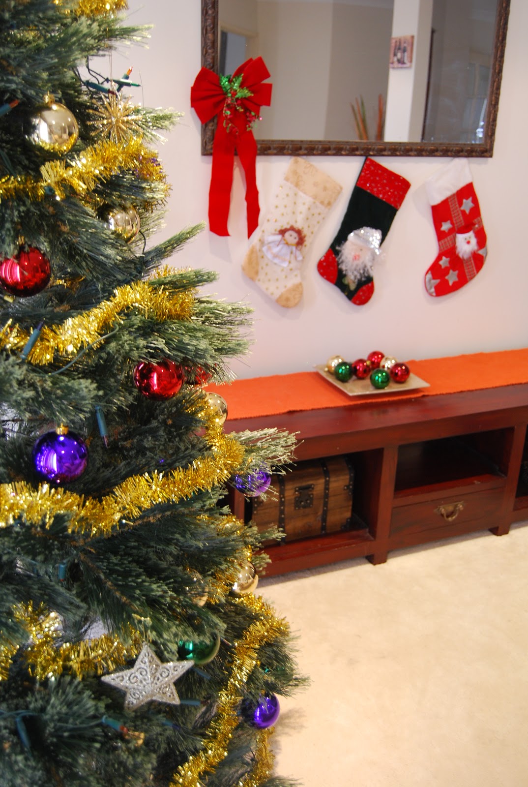 While Lewy and I were at the wedding, Sam helped Nanna decorate our tree. Sam is so excited for Christmas he can barely contain himself! Today we put on some Christmas music and hung up the stockings and other bits and pieces.