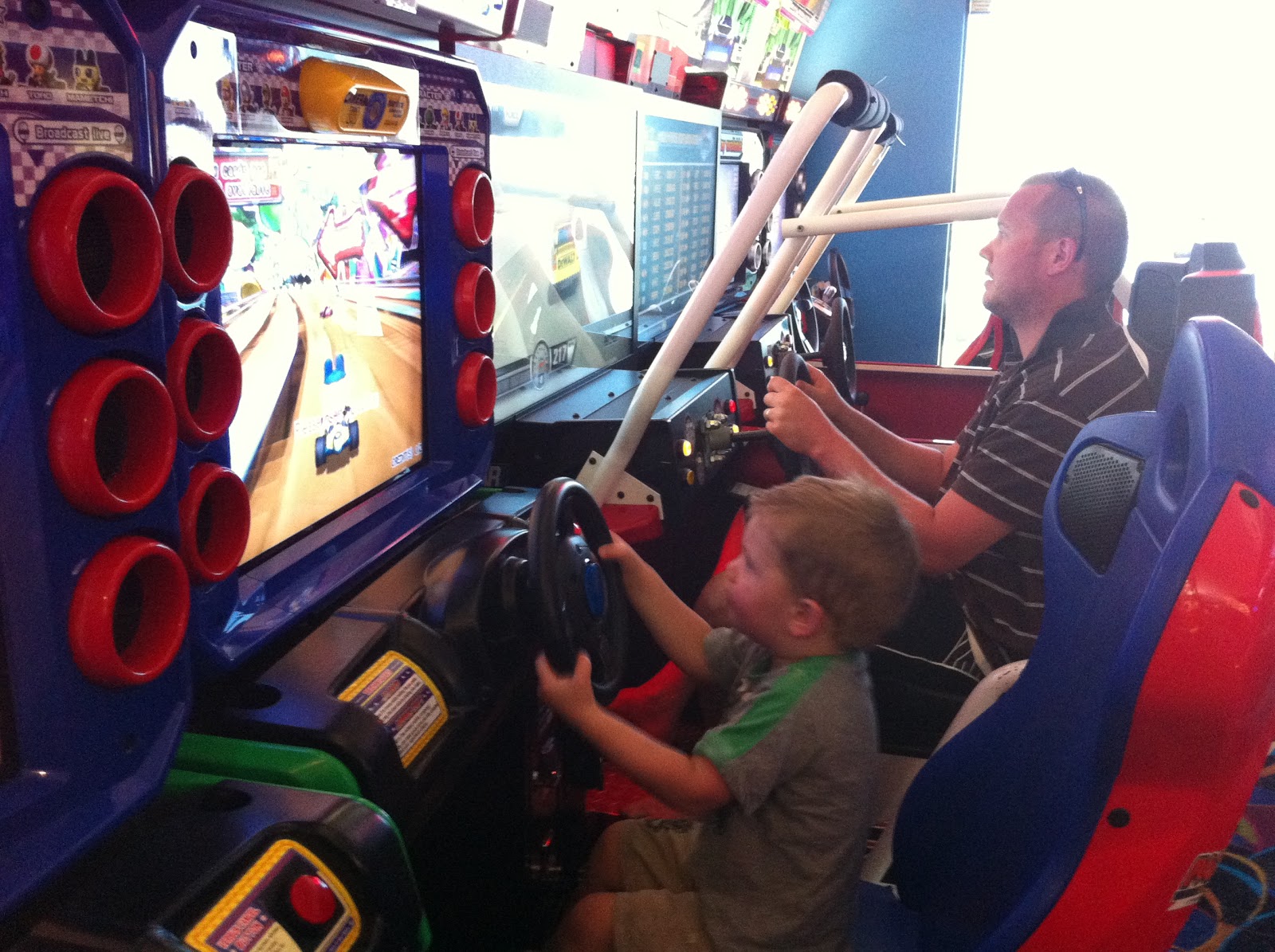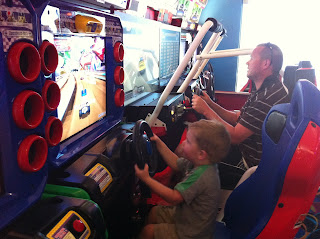 Next was a visit to Time Zone and few races with Dad.. (or pretend races in Sam's case :)