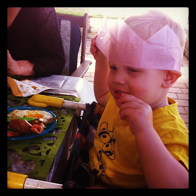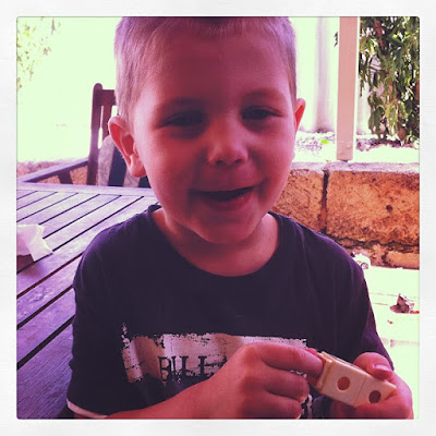 We spent lots of time outside, the boys playing under the tap, Marley and I watching them. Sam then donned his chef uniform and invited me to come to his 'restaurant' for chips, toast, cake and coffee. Delicious! It was loads of fun :)