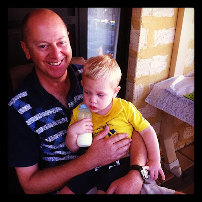The boys did really well at daycare today with the extended time. They seemed to adjust perfectly, although I was told that 30 minutes before I arrived to pick them up, Sam got a picture of me (that the daycare keep on a wall for the kids... not just of me, photos of other parents too.... I don't think a photo of just me would make the other kids that happy...enough Tracey, enough).. um, anyway Sam got a photo of me and cuddled it until I arrived. So sweet but breaks my heart a little!