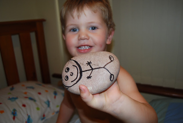 Too cute!! "George" haha - love it!! Glad Sam has his priorities right - rename the his brother, not the rock! Love the drawing Trace... it's about as good as I'd manage too! My Dad is an artist, my brother got those genes and I lucked out COMPLETELY!
