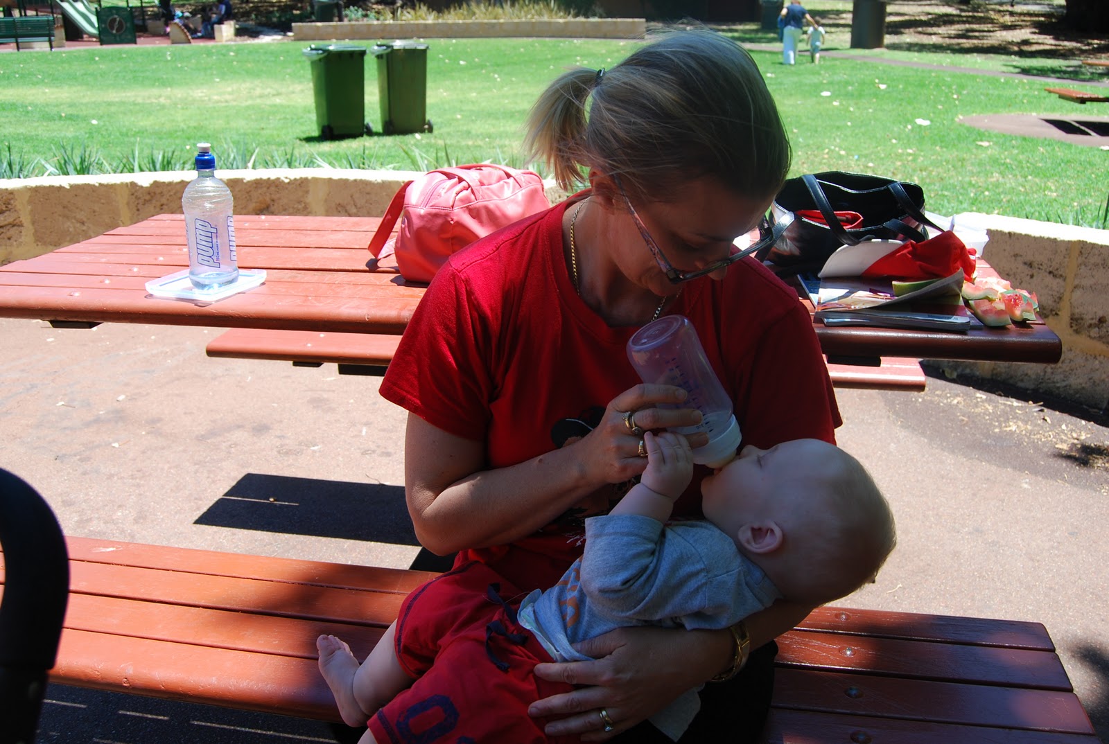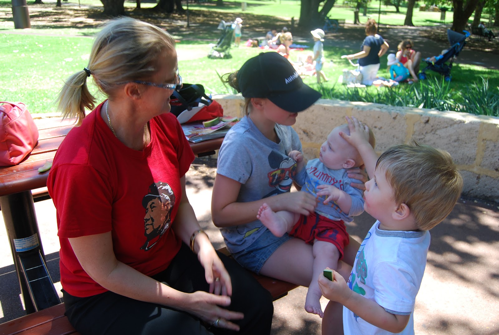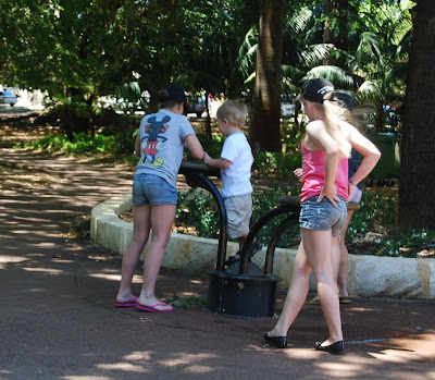 What made it even more special, was meeting a gorgeous family while we were there. The girls adopted Sam and Jacob and spent the next hour playing with them, while I sat on the bench with my new friend, Lyn chatting the morning away :) We wouldn't have met them if it were not for Sam going up and sitting next to them on the bench and asking if he could have a piece of their watermelon!