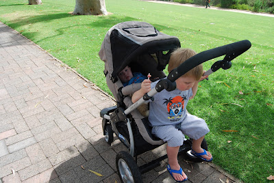I took my boys to Kings Park, to the main look out area and then to the Synergy Parkland. It was a fantastic morning, wandering around and enjoying the fresh air. Sam played HARD and had so much fun while Jacob enjoyed chilling back in the pram, taking it all in, and smiling at anyone who looked at him :) It was one of those mornings to put into the memory bank as precious quality time with my boys.