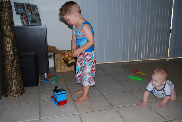 After a productive morning, once Jacob had woken from his nap.. we all went into his room and played. Okay... I will admit I was tired, so all I did was lay on the floor while the boys played around me :)