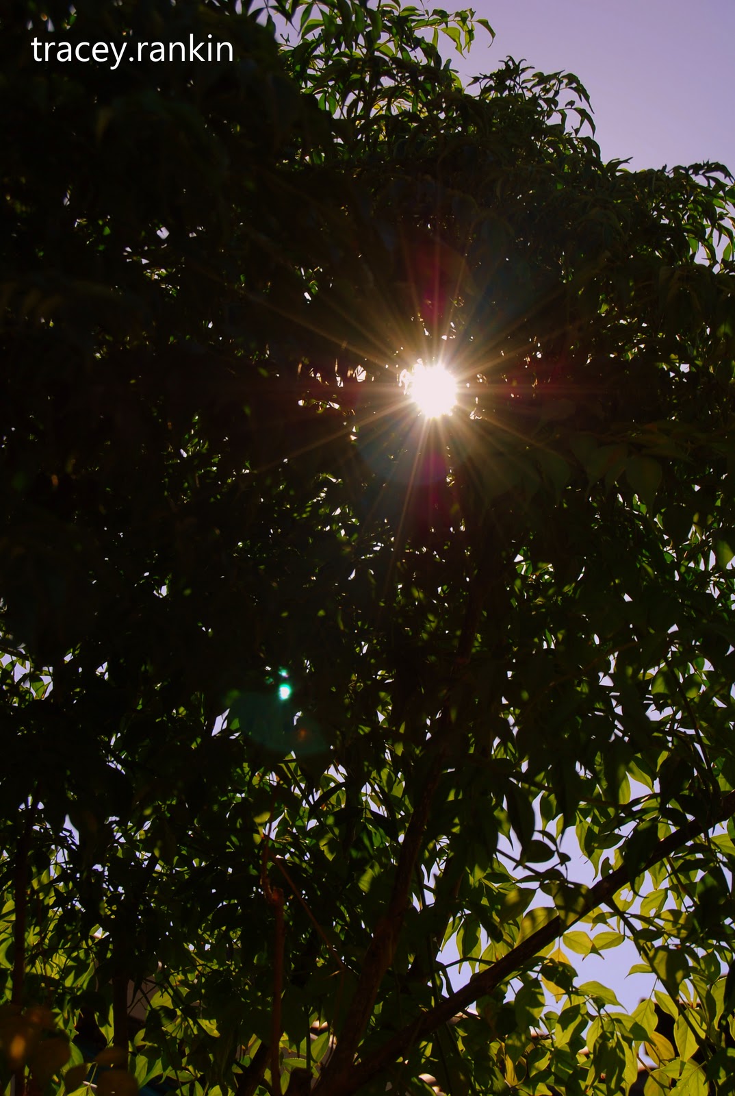 The sun peeking over the garage roof...