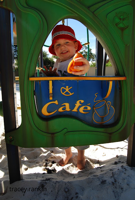 Sam met a little friend, and they set up stall to play shopkeeper. It was adorable!
