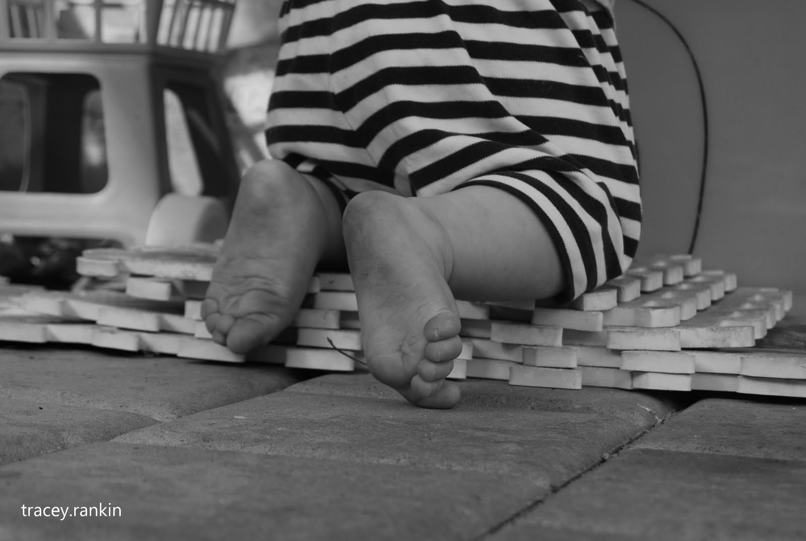 Jacob's cute little feet, dirty and dusty as he explores the backyard...