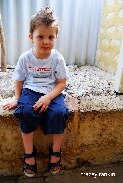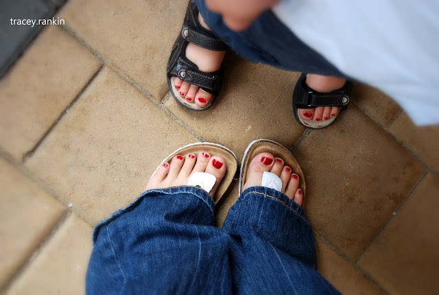 I know, I know.. it looks a bit funny with a boys sandled feet with red toe nails!