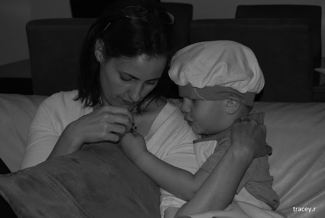 Chef Sam assisting Nanna in the kitchen. (Yes I admit, Mum provided the dinner last night! Thanks Mum!)