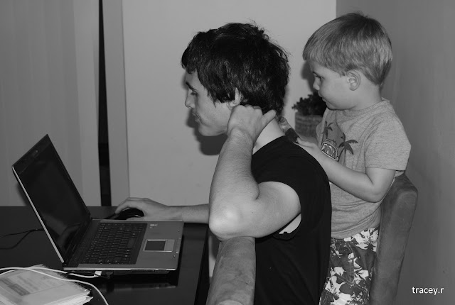 I love this photo, Caleb was on the latop while Sam sat behind him the entire time keeping an eye on things :)