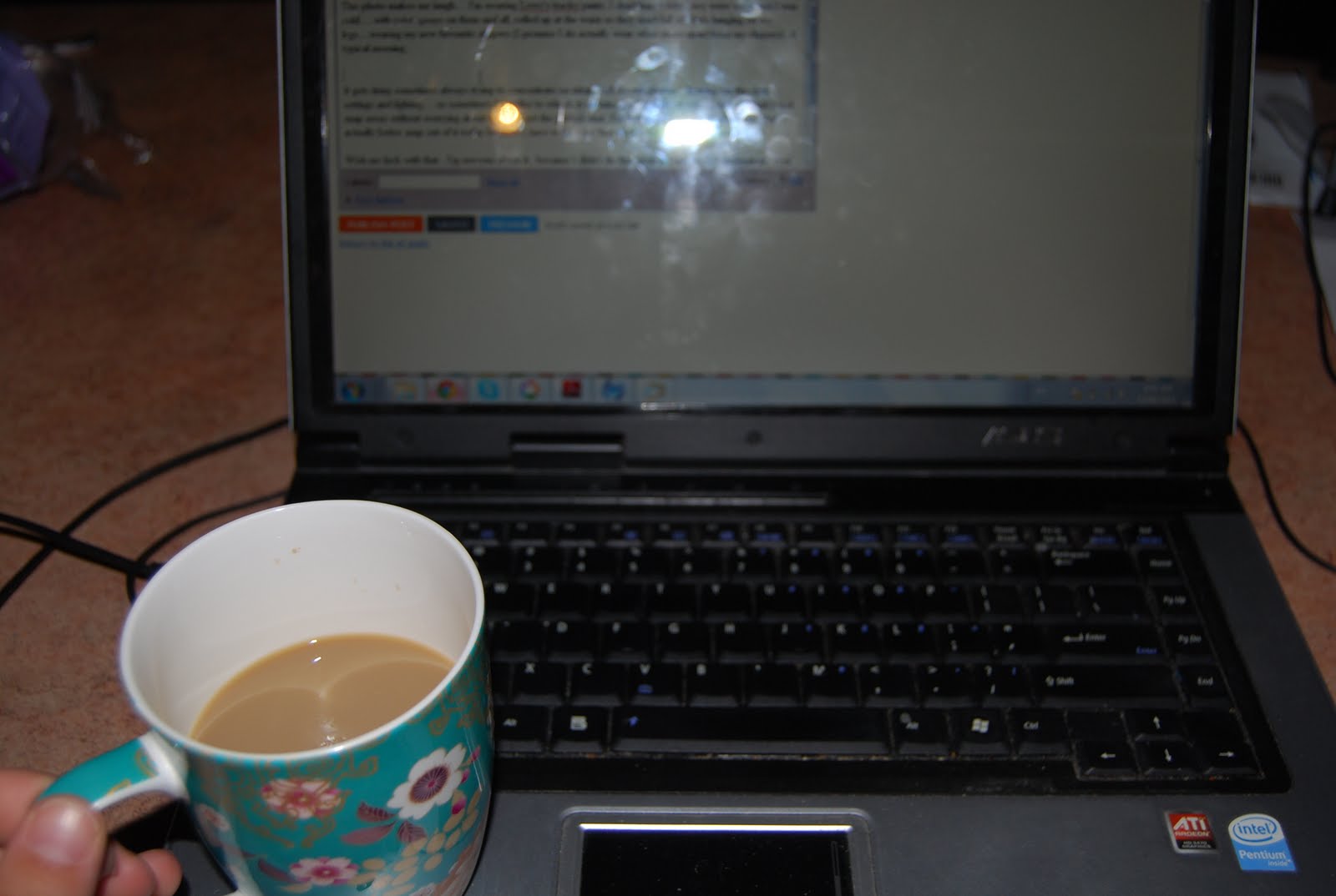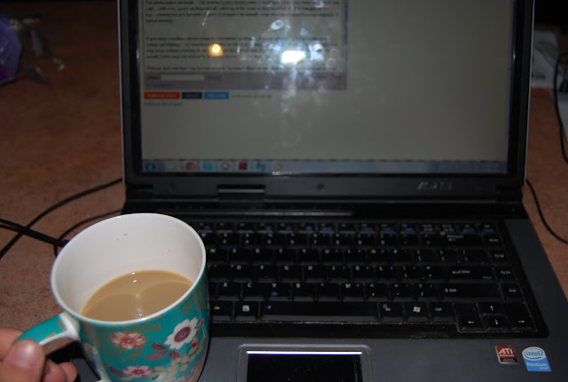 Blogging early in the morning... oh hello pretty cup.... and yes I know I need to clean my laptop screen! |