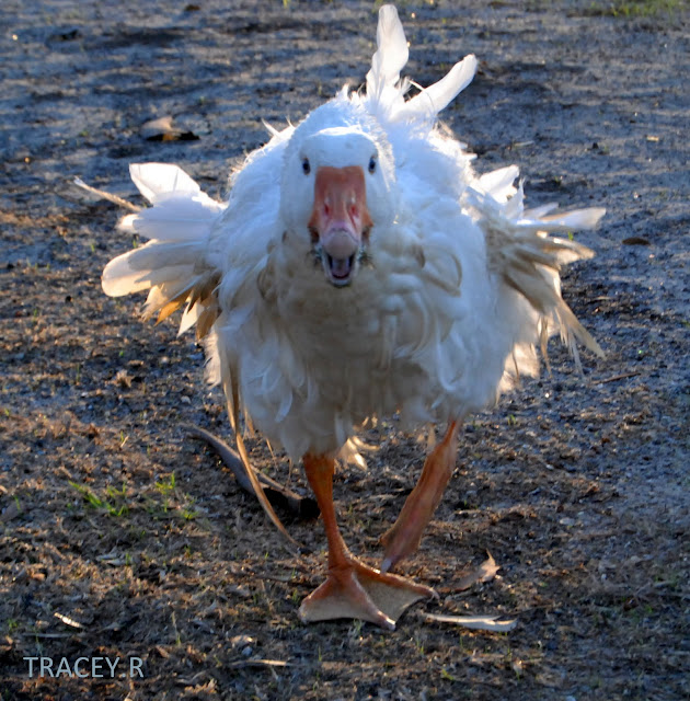 That is one angry goose!! But yep they are pretty well known for being a big aggressive I think! Does look like he's been in the wars though, poor thing :-(