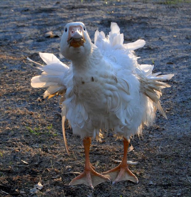 Check this dude out.... he totally freaked me out, he looks kinda crazy...I think he had gotten into a fight or something (do geese even get in fights?), something happened to the poor little guy anyway... but he was not shy in letting me know he wasn't happy with me being there! He followed me around squawking at me and trying to bite my shoes...