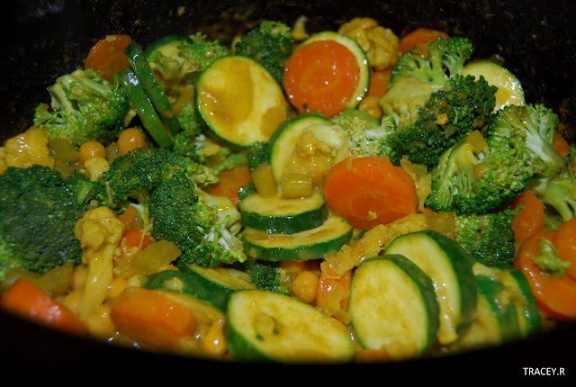 And quickly.. before I head to bed.. here is a quick, easy way to make a Vegetable & Chickpea Curry. I probably shouldn't add this to the blog as it's kinda cheating using a packet rather than making the curry sauce from scratch, but I'm adding it anyway as this particular curry sauce has a gorgeous flavour and well, I took the photos so it's a waste not to put them up ha!.