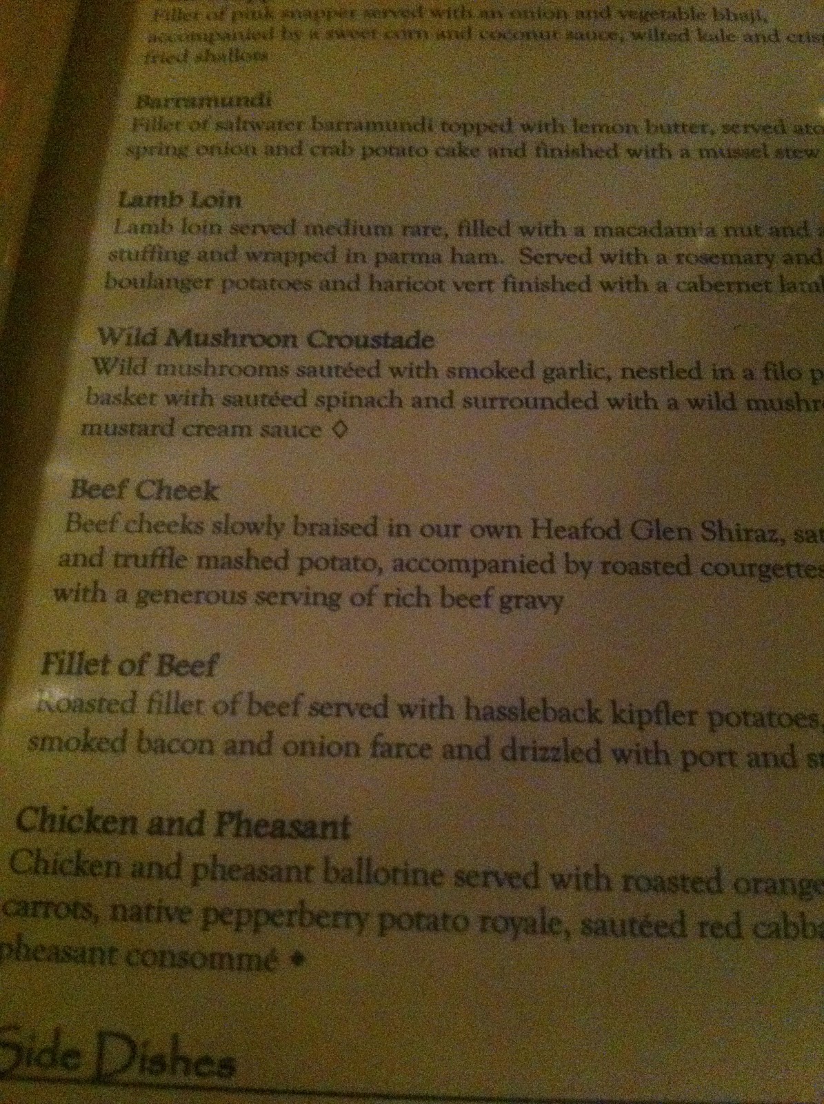 Main - Wild mushrooms with garlic, spinach and cream sauce, in a filo pastry... my mouth is watering again just thinking about it! (Looks kinda simple, but the flavours were rich and delicious!)