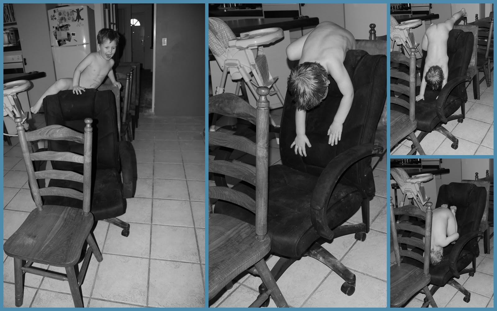 I know it looks like Sam is falling over the chair here, but he actually meant to do this! My little climbing monkey....