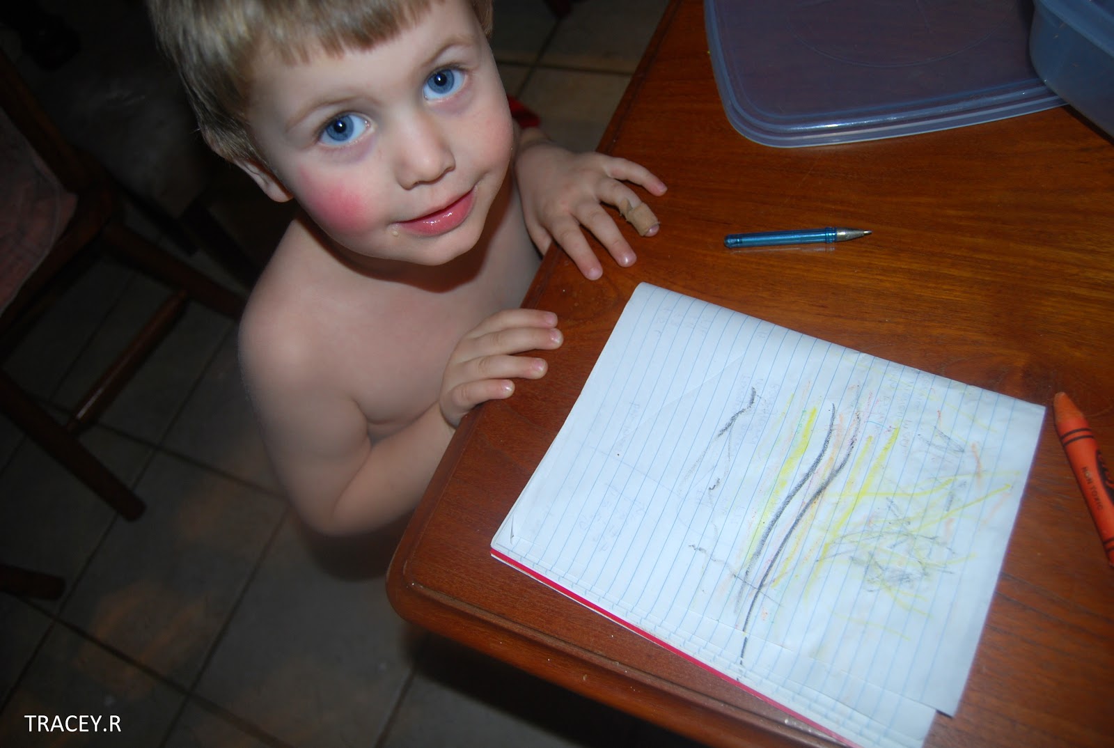Sam is so cute, Ilon calls being naked "snaky". Your room is coming along great! Can't wait to see it finished! How nice to have a handy man!