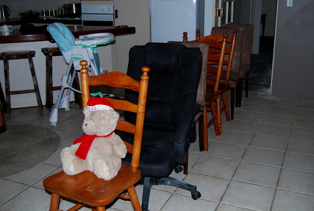 The train! Sam put together his new toy train... he even sat on the chairs to have his breakfast and lunch, and got Jacob and I to join him on a train ride.. "to Bali"....Christmas Bear was the driver, he did well and got us to our destination safely.