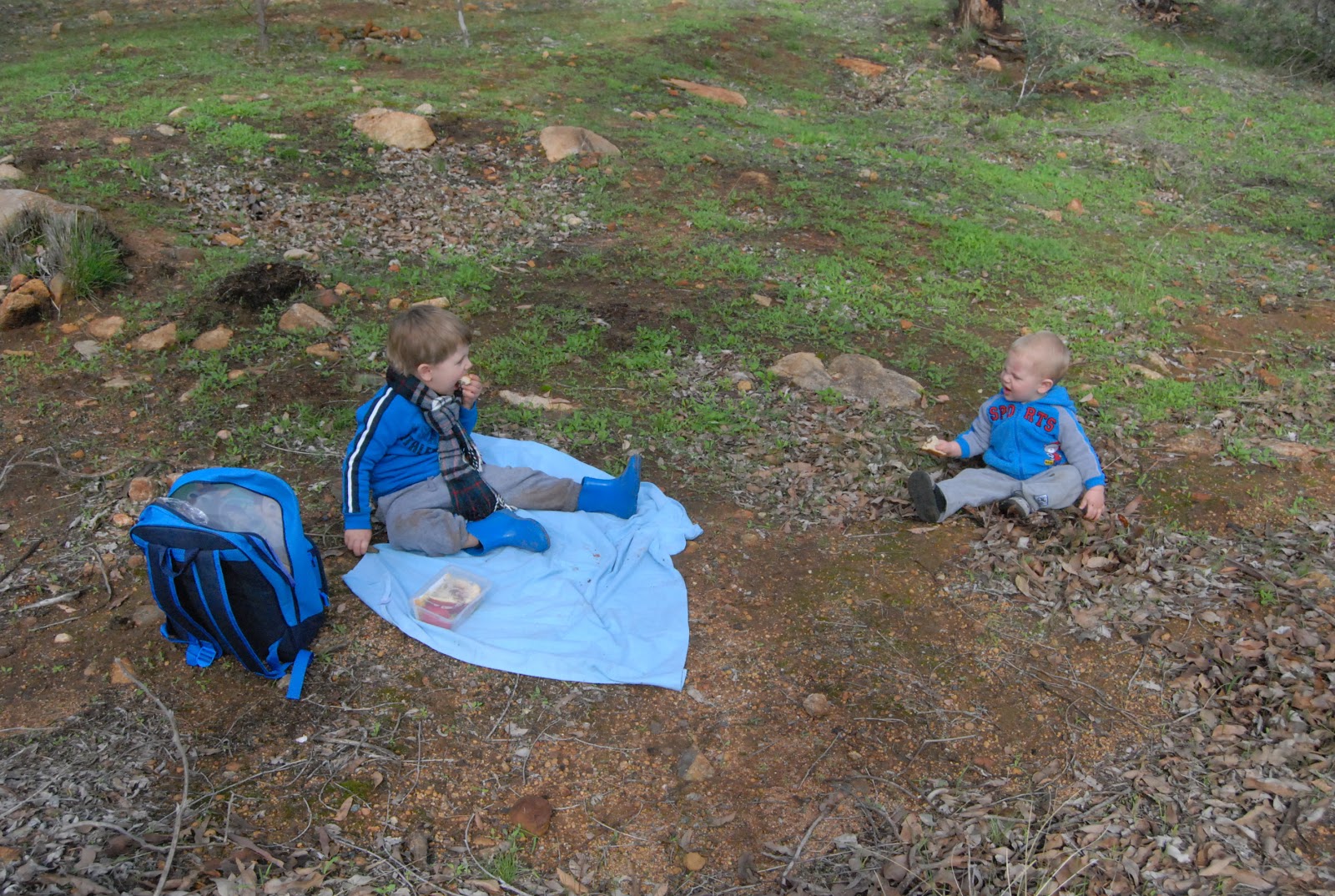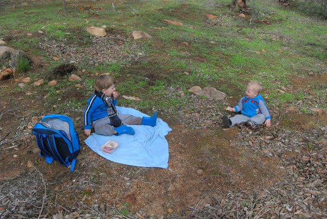 Check these boys out... this was literally like 5 seconds after we got out of the car! I then figured the sooner I filled them up, the sooner we could go exploring! .... anyone would think I coloured coordinated my boys and our belongings! .. least they would have been easy to find if I lost them :)