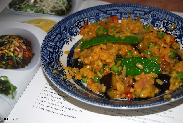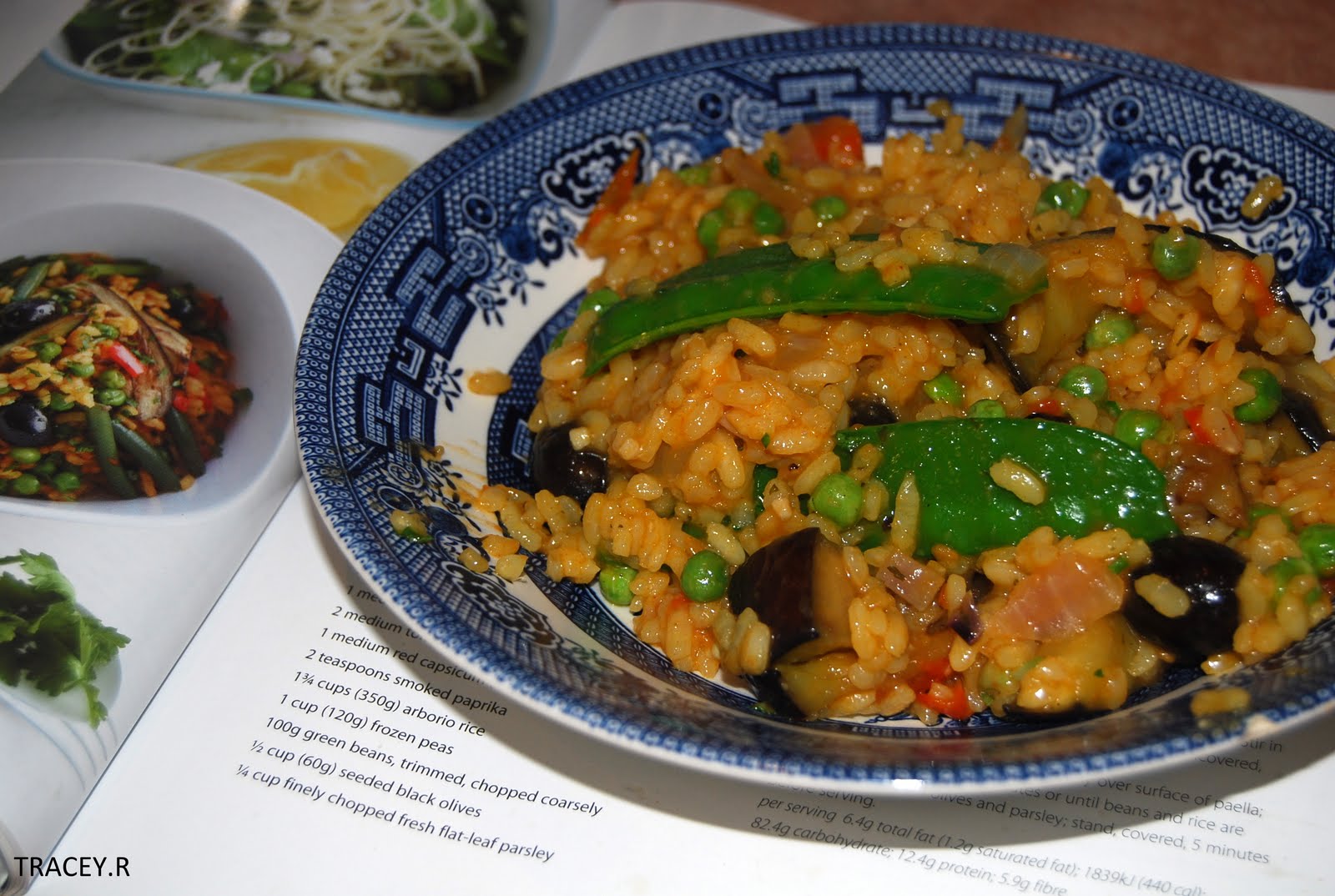 6. Stir in peas, beans and eggplant and simmer covered for about 10 minutes or until beans and rice are cooked. Stir in olives and parsley... all done! Delicious!
