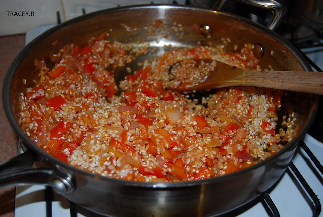 3. Cook garlic, onion, tomato, capsicum and paprika in same pan, stirring, until onion softens.(This smells gorgeous!)