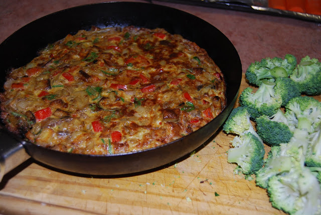 I served the tortilla with boiled broccoli and roasted carrots and potatoes (potatoes seasoned with the magic AlSeason). I then grated some parmesan cheese over the tortilla before digging in! Delish!
