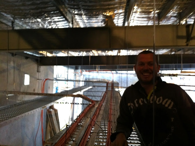 Lewy sent me this picture today .... working hard setting up the endless amount of cabling....