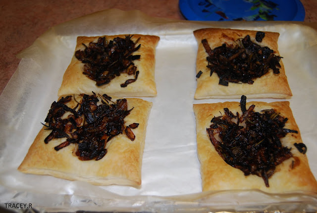 3. Spread the onion over the pastry and cook in oven at 180 for around 20 minutes (or until pastry is puffed and browned)