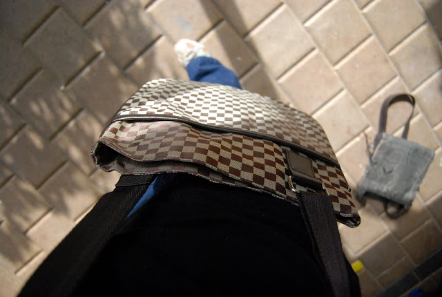Yay! My new bag arrived today, I love it! See my old bag discarded on the ground....it is now in the kids toy box for them to create games with.