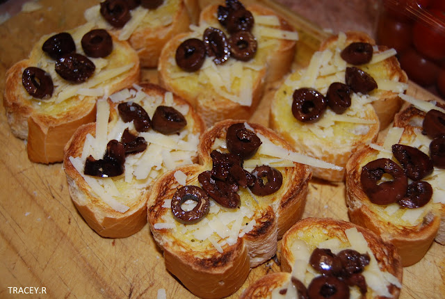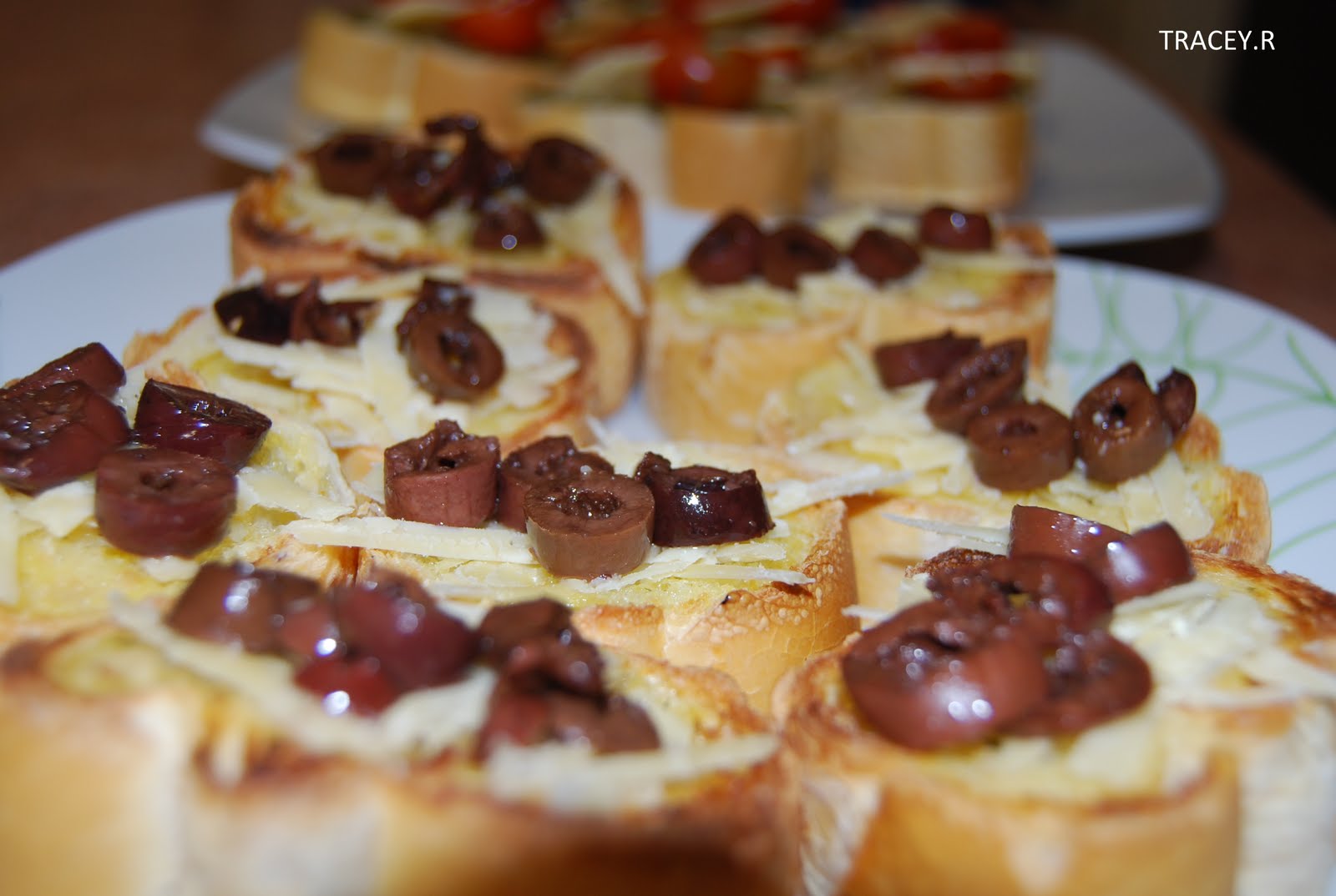 Made a garlic butter base, grilled it for a bit, then topped it with grated parmesan and kalamata olives.