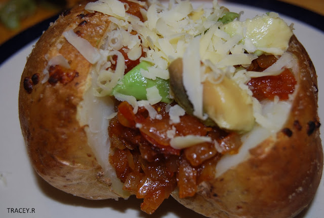 I was going to put mushrooms on as well... but I accidentally ate them all while the potato was baking :)