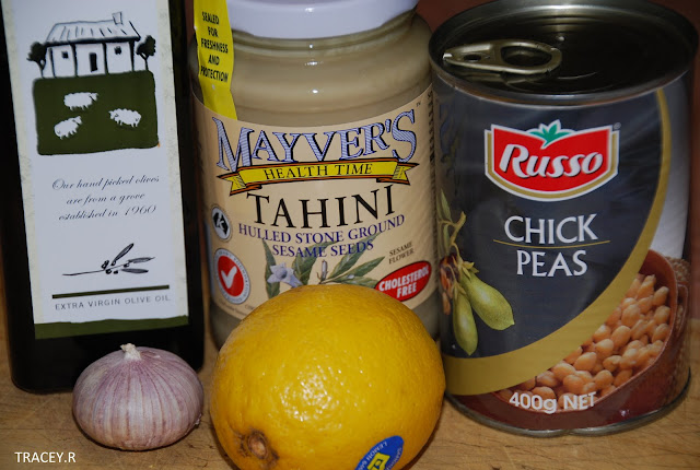 So simple - Put the chickpeas, lemon juice, tahini paste, garlic and olive oil into a blender or food processor. Season with salt and pepper, then whiz to a paste. Done!