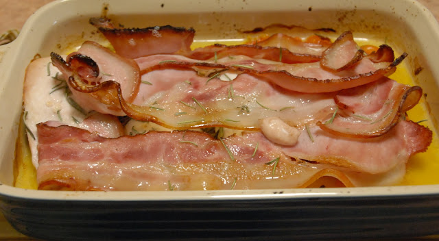 2. Then lay your 4 fillets on top and sprinkle with rosemary leaves and garlic