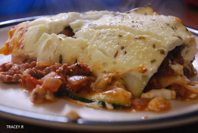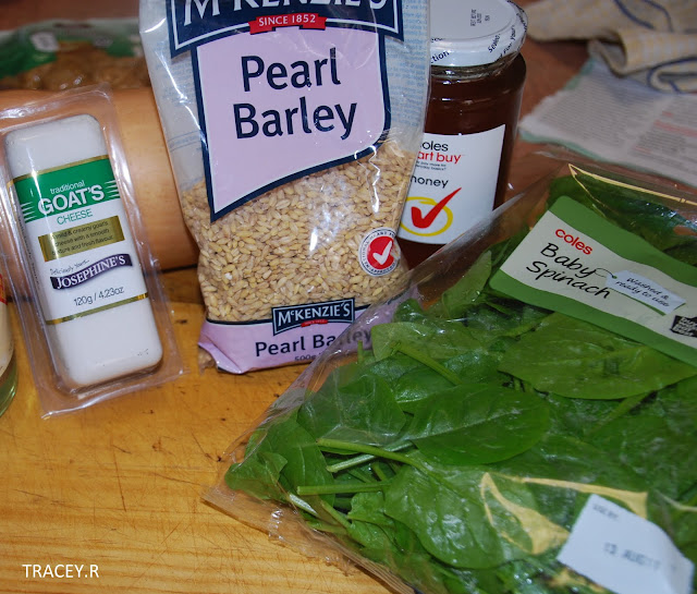 On the menu for tonight's dinner we have a Greek Lamb & Zucchini Bake served with a Barley & Honey Roast Pumpkin Salad (and some Tofu for me :)