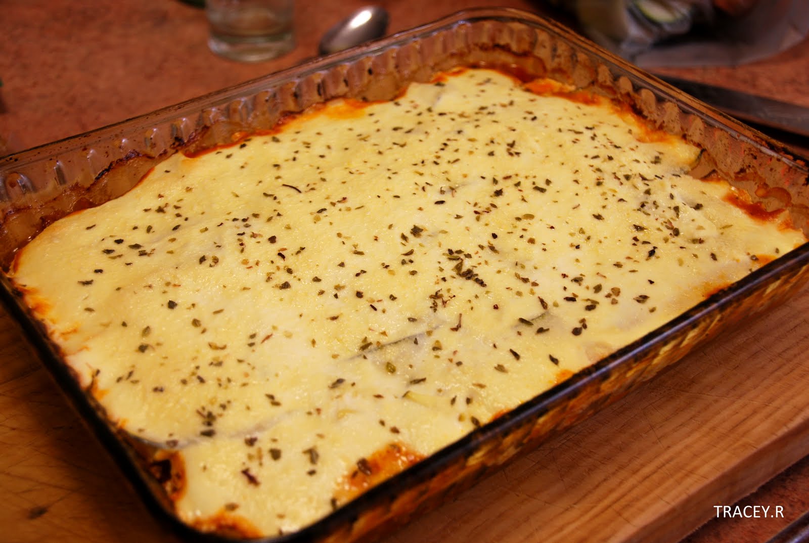 3. Spoon half the mixture into dish and top with half the zucchini. Repeat with the remaining mince mixture and zucchini. Top with yoghurt, sprinkle with cheese and some dried oregano to finish. Bake for 30 minutes. Done!