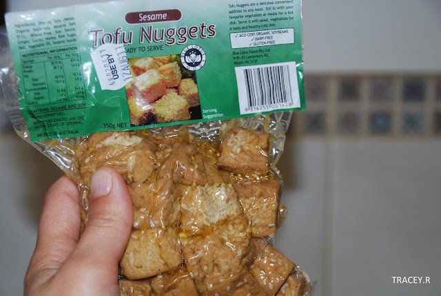 Cheating a bit... but I ran out of time to marinate my own tofu, so I grabbed this ready-to-serve Sesame Tofu to add to the salad for my dinner.
