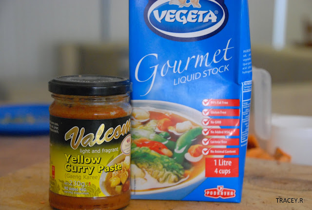 Instead of the Indian Curry Paste I used Yellow Curry Paste. Oh it's so delicious! It turned out much better than I thought it would, it's very filling and totally tasty! I don't have a picture of the completed dish... I was too hungry and forgot!