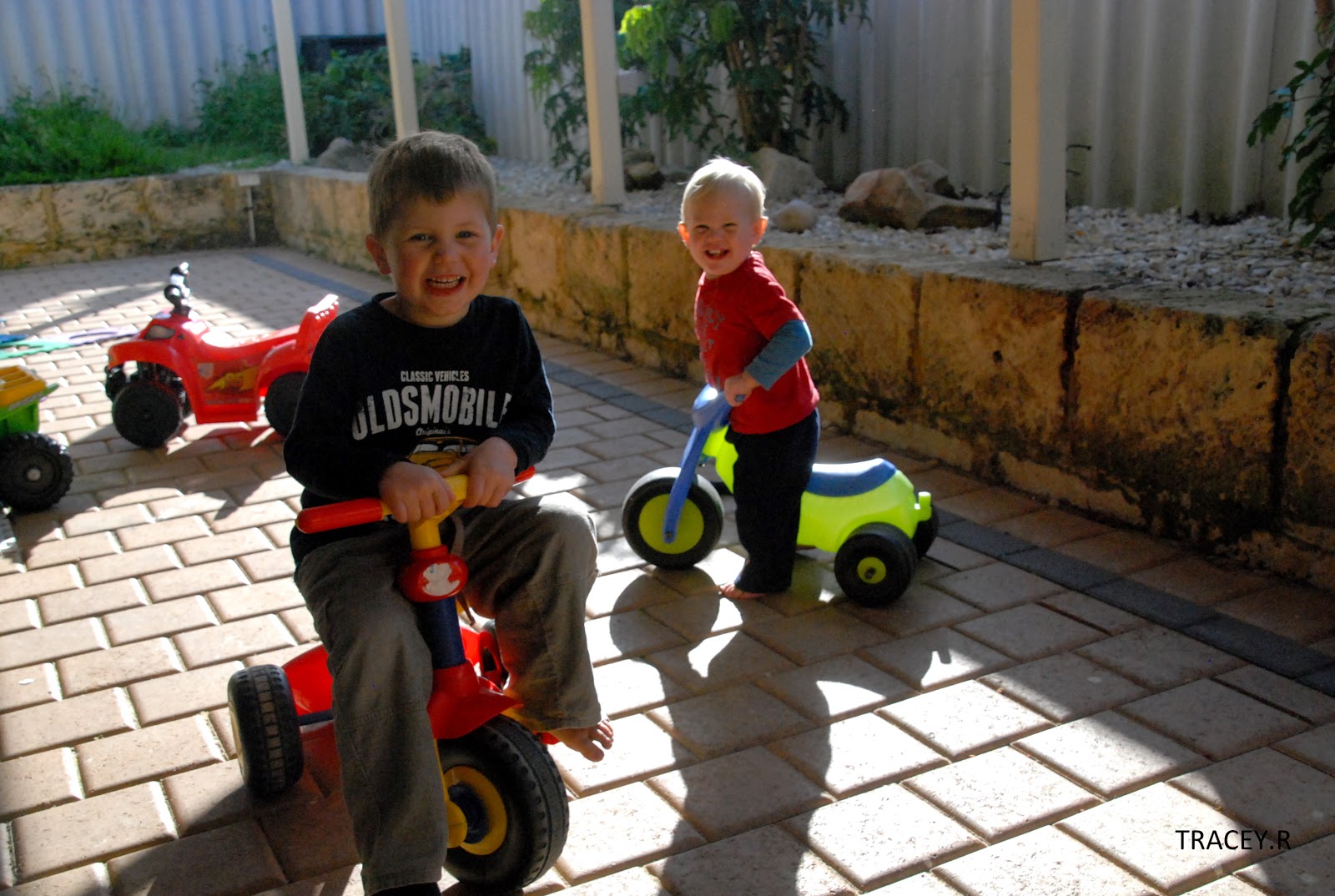 It's been a big day, with the trip to Mandurah and back, while my boys enjoyed their time at daycare. They look pretty happy to be back home on their bikes!