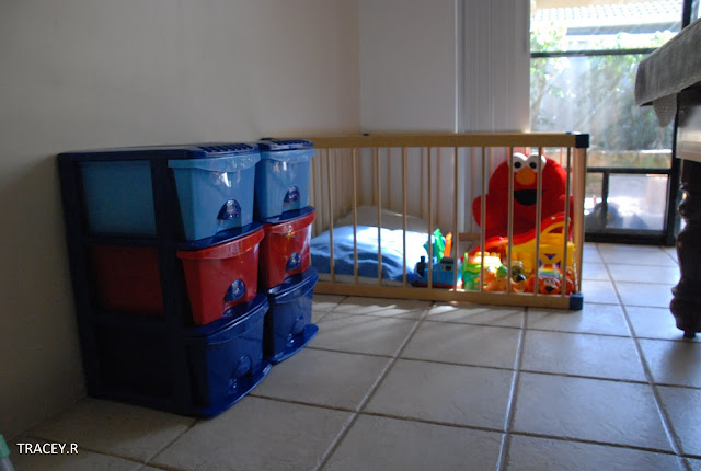 Oh and the play pen.. let me explain that. It's simply to keep the other toys in one area, a place for quiet time (Sam loves it, he climbs in and lays on the pillows to look at his books), and the other reason it's there is when I need to vacuum and mop.. my little baby goes in there so I can actually GET IT DONE! I tested it out today, sanity saving.. that's all I'll say! Big thumbs up!