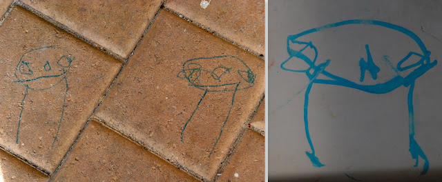 I showed him these photos once I had downloaded them... he said "I forgot to put arms on!", then ran outside to add some arms. Love it!
