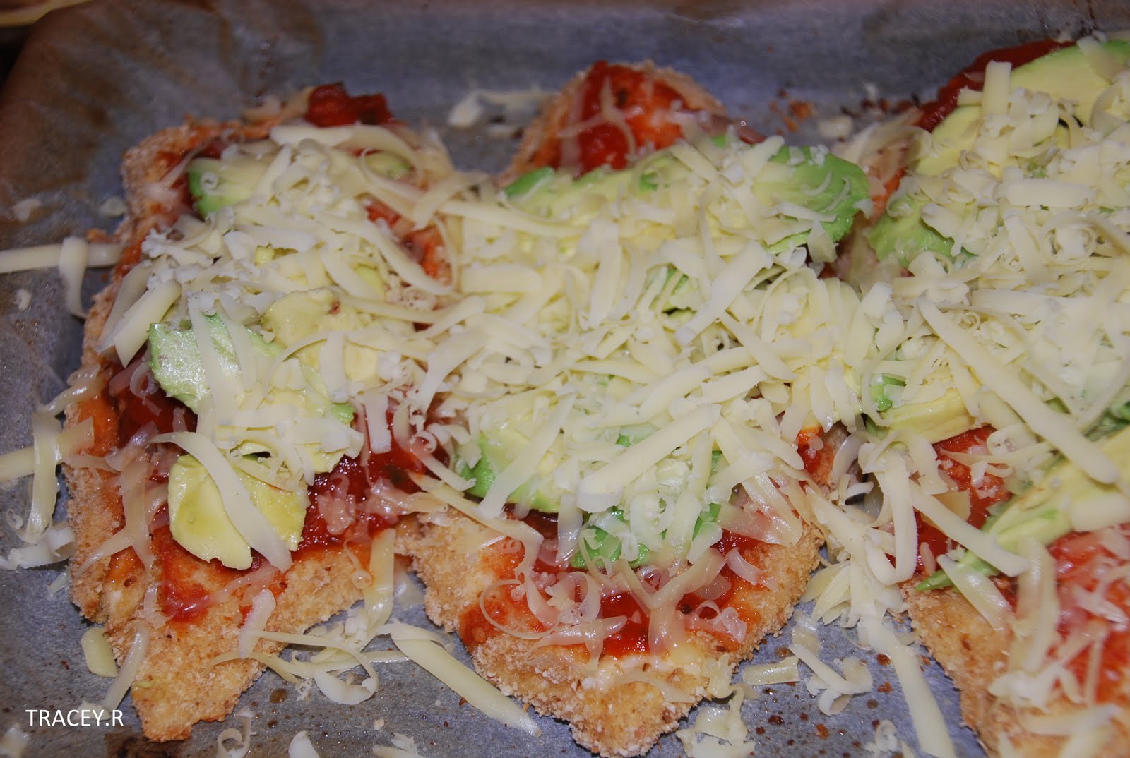 5. Top with 1 heaped tablespoon of pasta sauce, arrange avocado over sauce and sprinkle with cheese.