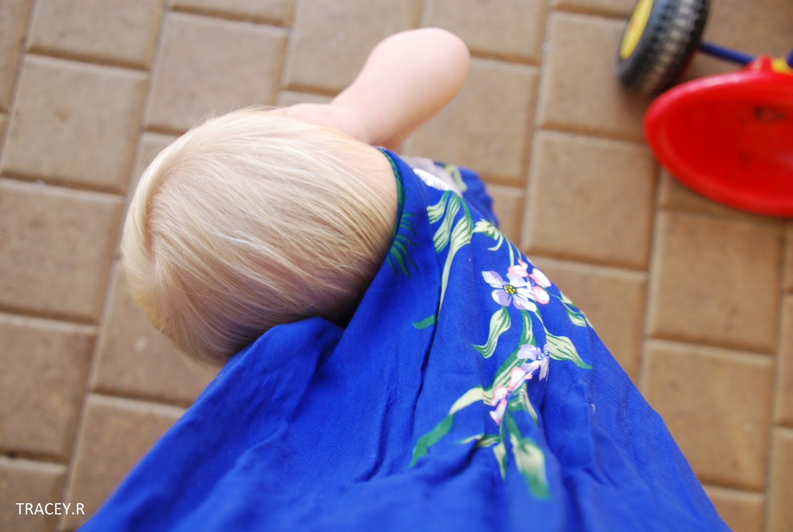 Afternoon hot fun, out comes the summer dresses and pink thongs... as well as a baby attached to my legs :)