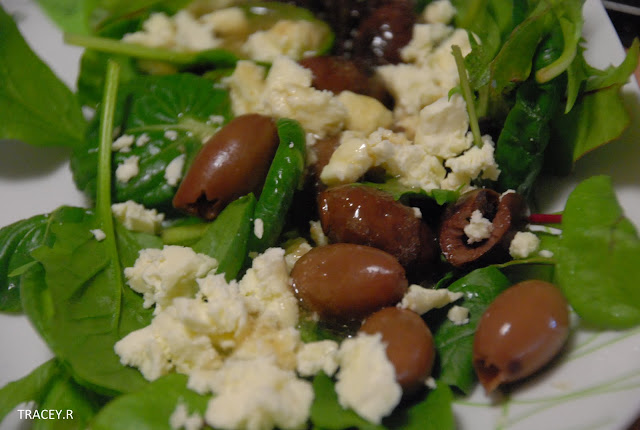 I made up a quick side salad with Fetta & Kalamata Olives...
