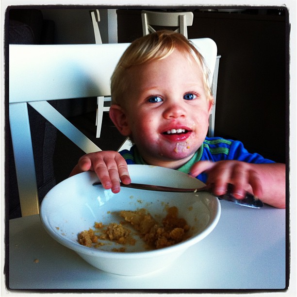 My mum has very kindly prepared dinner for me to take home for tonight (and an extra dish to put in the freezer for another night). Not only that we have a gorgeous Apple crumble courtesy of Sam, and a nice fresh loaf of bread baked this morning. Lucky or what?! Lewy is going to be happy .. we come home bearing yummy gifts.