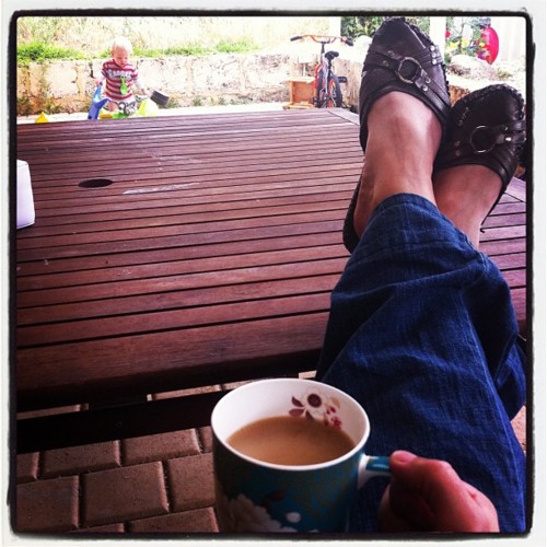 Mid morning coffee outside with Jakey, while Sam and Nanna went off to get their hair cuts. Isn't that the cutest thing? It's become a regular thing now that they get their hair cut together. Love it.