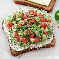 I want to eat this - California Sandwich: Avocado, tomato, sprouts and pepper with chive spread.