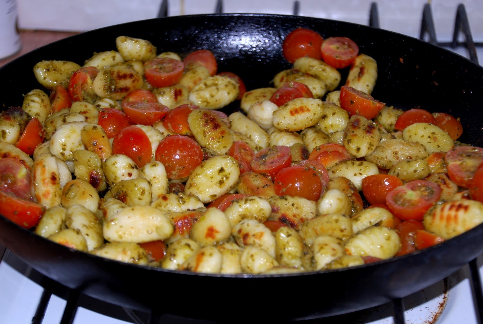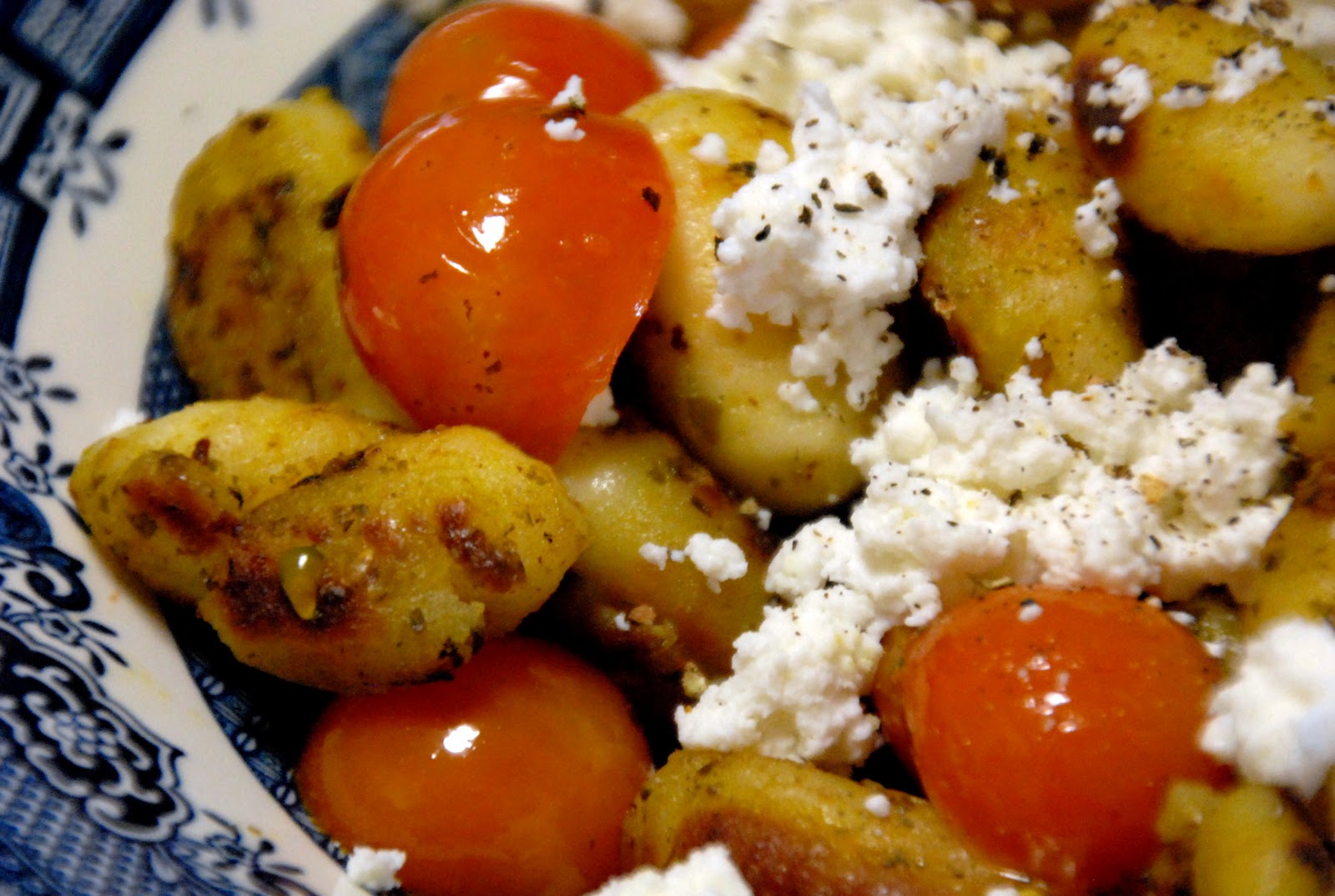 Crispy Gnocchi Pesto with Tomatoes and Goats Cheese