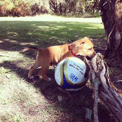 Another day, another trip to Whiteman Park. Marley is now allowed out and about after having his shots so he doesn't pick up any nasties. We headed down to our favourite stretch of grass with the Soccer ball and Marley made the most of stretching those cute little legs :P