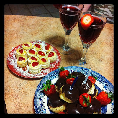 While I was prepping the glasses, complete with strawberries and lighting the candles in the front lounge room... Lewy hung around the kitchen with a grin on his face and said "Ummm, it's quite the romantic night you are planning" :)) Only the best for my Val :)